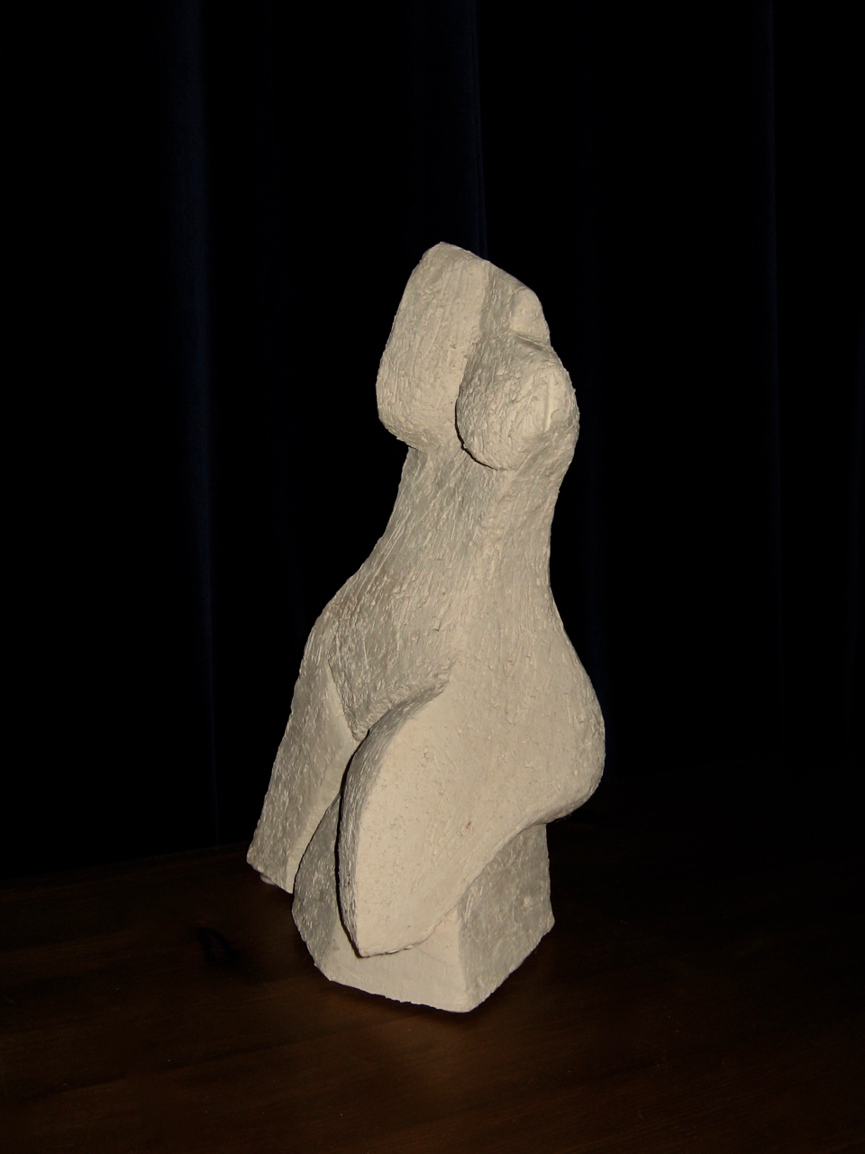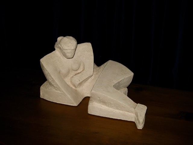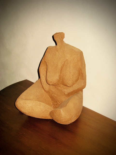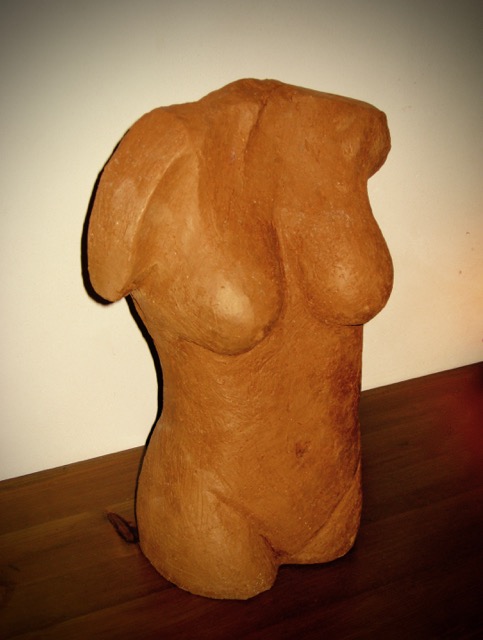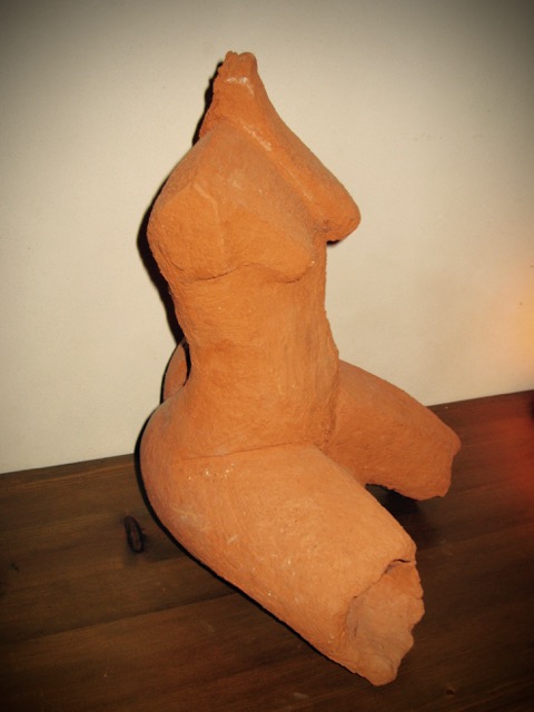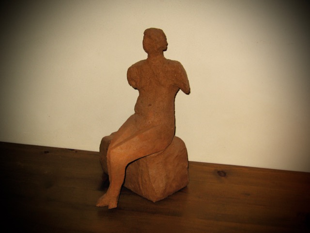 Mijn mensfiguren worden van Chamotte klei gemaakt , veelal geabstraheerd en in grootte variërend van 30 tot 90 cm.